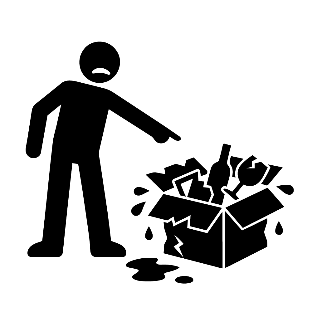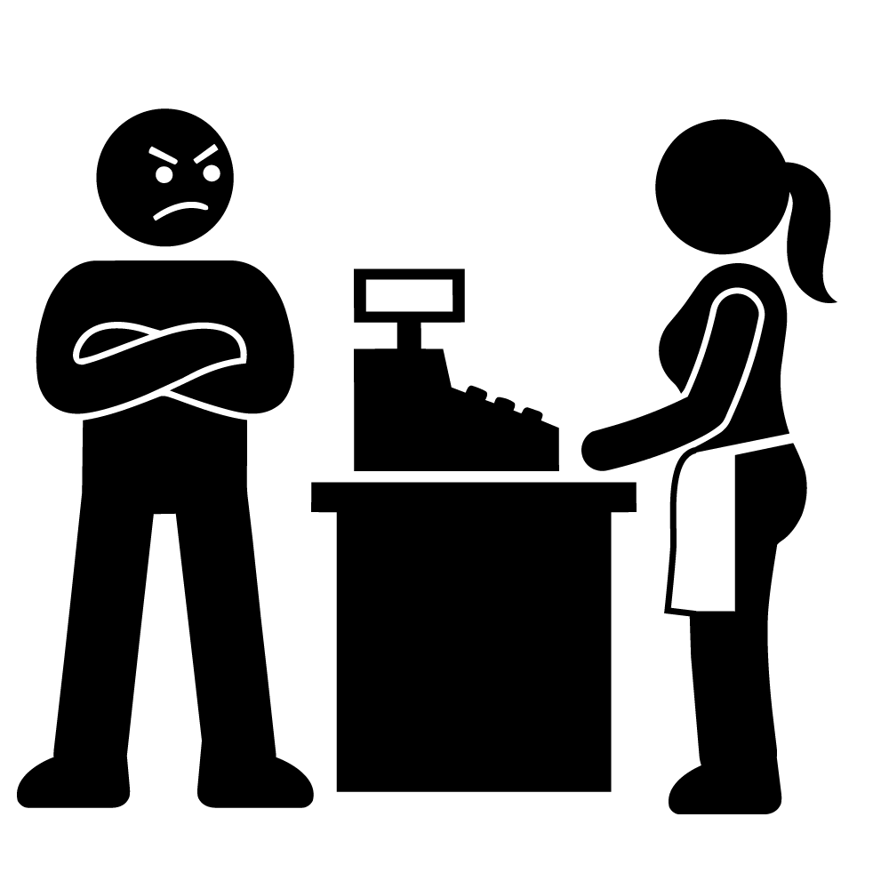 低評価の口コミにショックを受ける人の白黒アイコン素材